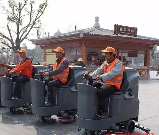 高美GM110BT85駕駛式洗地機成為海南三原華庭物業(yè)服務有限公司的清潔好幫手!