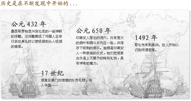 哥倫布將煙草帶回歐洲后,隨著人類的戰(zhàn)爭與探索,煙草從美洲走向了全世界。17世紀,煙草在澳門作饋贈的珍貴禮物,傳入中國……