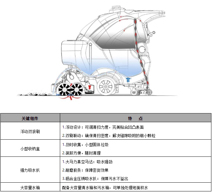 作為洗地功能和掃地功能的整合機(jī)型,洗掃一體機(jī)可以覆蓋洗地機(jī)和掃地機(jī)的很大一部分清潔場(chǎng)景。高美洗掃一體機(jī),擁有浮動(dòng)滾刷、小型收納盒、強(qiáng)力吸水扒、大容量水箱等優(yōu)勢(shì),可以應(yīng)對(duì)各種類型頑固污垢的清潔作業(yè)。