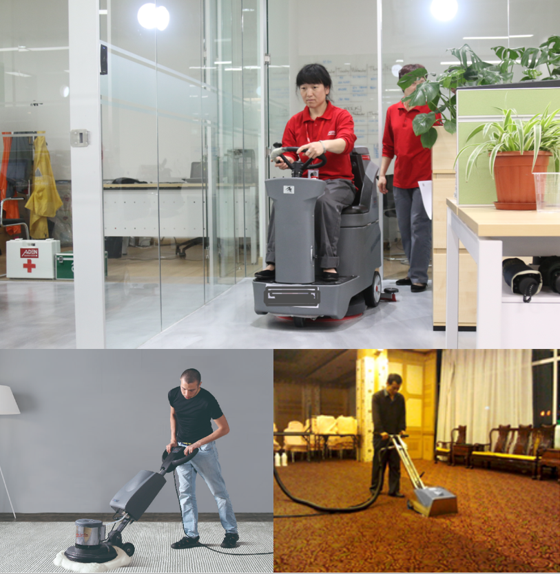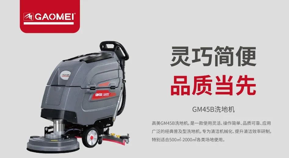 品性兼優(yōu),助力清潔。隨著社會經(jīng)濟的發(fā)展,人們對于工作生活的環(huán)境要求不斷提高。例如高檔寫字樓等辦公場所環(huán)境,有賴于高效、省心的清潔方式來維護。高美在應(yīng)對清潔效果、清潔效率、噪音控制、形象等高標(biāo)準(zhǔn)需求方面,有著豐富的經(jīng)驗,并深受市場信賴。重點推薦產(chǎn)品高美GM-MINI駕駛式洗地車高美GM45B手推式洗地機場景介紹大廳:地面多以大理石、瓷磚等硬質(zhì)材料為主,日常人流量大,污漬產(chǎn)生快,清潔度要求高,需要保持較高的清潔頻率,單次作業(yè)時間要求極短。可根據(jù)面積大小選駕駛式或者手推式洗地機,可以快速有效實現(xiàn)清洗、吸干的同步作業(yè)。走廊:包電梯、電梯間、走廊等場所,較為狹窄,適合更加小巧靈活的清潔設(shè)備,手推低速更安全,且能滿足一定清潔效率的需求。GM45B手推式洗地機,小巧靈活,兼具品質(zhì)和性價比,是中小型場景的理想之選。辦公場所:場景較為復(fù)雜,硬質(zhì)地面可選用靈活小巧的洗地機。如果是地毯,日常清潔可以選用高美吸塵器V20,中長期護理可以選用高美地毯清洗機GM-4或者干泡地毯清洗機FB1517/MF-10。大樓外圍、衛(wèi)生間等場所:多以硬質(zhì)地面為主,同樣可以選擇以上兩款機型來進(jìn)行清潔作業(yè)。涉及大理石等地面,需要定期護理的,可以選用高美晶面加重翻新機FC-2517。