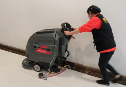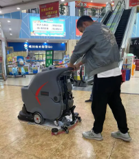 手推式洗地機(jī):體積小、靈活輕便,適用于清潔狹窄處和角落區(qū)域的地面,如各樓層的購物區(qū)、通道等。工作人員只需控制清潔方向和速度,適合節(jié)假日人流擁擠時(shí)使用。