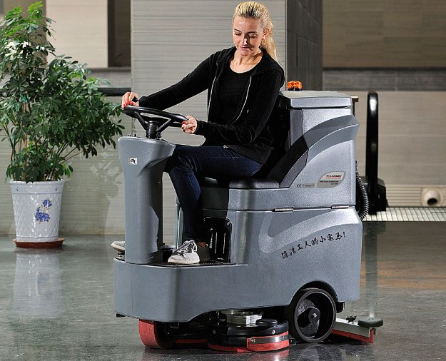 駕駛式洗地機(jī)既可以噴撒冷水刷洗地面,又能回收利用廢水吸走地面,集多種功能性于一體,工作的時候只要一人實際操作,開展清理地面工作中就可以,它的作用: