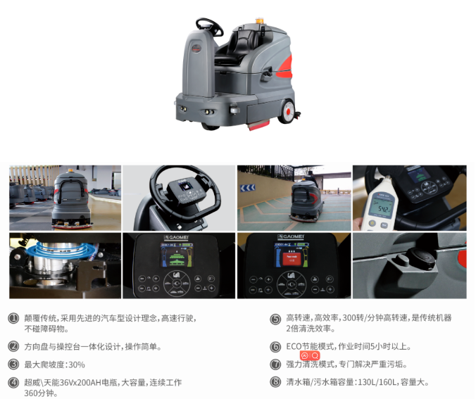 經(jīng)典產(chǎn)品,匯聚目光。作為在中部地區(qū)舉辦的一場行業(yè)聚會,高美給予了高度的重視,攜小型手推式、小型駕駛式、大型駕駛式洗地機,以及商業(yè)機等多款經(jīng)典機型登場,吸引了眾多觀眾前來參觀咨詢。