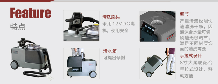 泡沫制造,電動刷洗、真空抽吸三合一,是清洗各種布藝家具和裝飾的專業(yè)設(shè)備。適用賓館酒店等場所。